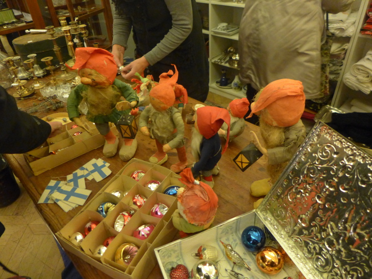 Tietysti myynnissä oli myös tonttuja ja muita joulukoristeita.