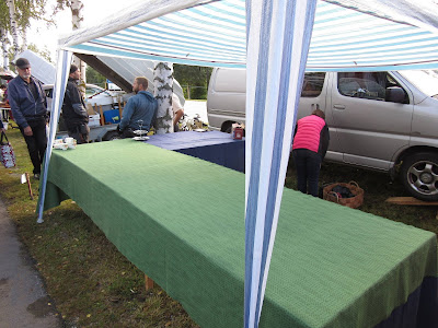 Nopeasti myyntipöydät alkoivat valmistua perjantaiaamuna.