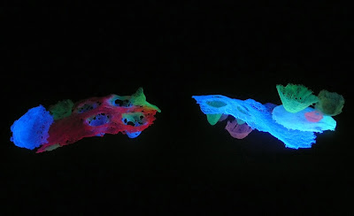 Almeida teoksia. Hän työskentelee fluoresoivan lasin kanssa ja siinä tiede sekä